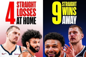 最近4個(gè)主場,掘金連續(xù)輸給公牛、國王、馬刺、獨(dú)行俠。最近9個(gè)客場,掘金連續(xù)擊敗國王、快船、森林狼、鵜鶘、火箭、灰熊、太陽、步行者、老鷹。球隊(duì)目前16勝6負(fù)西部第3。