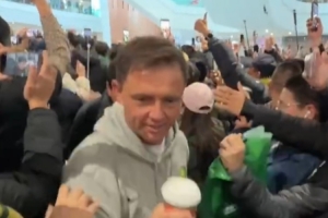 今日國(guó)安隊(duì)搭乘航班返回北京,眾多國(guó)安球迷前來(lái)接機(jī),現(xiàn)場(chǎng)還唱響了國(guó)安隊(duì)歌《國(guó)安永遠(yuǎn)爭(zhēng)第一》。