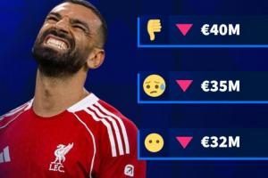在德轉(zhuǎn)的預(yù)告中,給出了薩拉赫身價(jià)更新的四個(gè)選項(xiàng):4000萬歐、3500萬歐、3200萬歐、3000萬歐。而目前薩拉赫的德轉(zhuǎn)身價(jià)為4500萬歐元,這也意味著薩拉赫的身價(jià)一定會(huì)出現(xiàn)下跌。