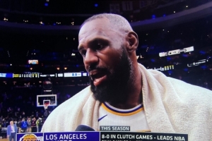 體育資訊12月8日訊 NBA常規(guī)賽,湖人客場(chǎng)112-108擊敗76人,詹姆斯賽后接受了媒體采訪(fǎng)。