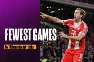 據(jù)Opta統(tǒng)計(jì),凱恩出戰(zhàn)76場(chǎng)德甲比賽,10次上演帽子戲法,他是德甲歷史10次戴帽所用場(chǎng)次最少的球員,只有4名球員德甲戴帽次數(shù)更多,他們是蓋德·穆勒、萊萬(wàn)、馬里奧·戈麥斯和克勞斯·費(fèi)舍爾。