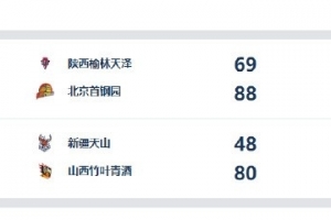 山西竹葉青酒80-48新疆天山,林育庭獨(dú)得19分6助攻,霍俊彤18分,埃格博12分8籃板。新疆女籃武桐桐17分5助攻,莫普雷米爾10分14籃板。