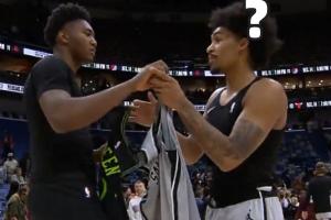 GIF-奎因哈珀交換完球衣前者又把球衣要回去了