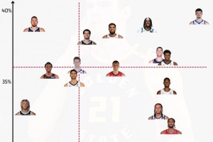 縱坐標(biāo)未三分命中率,橫坐標(biāo)為籃下防守率。
