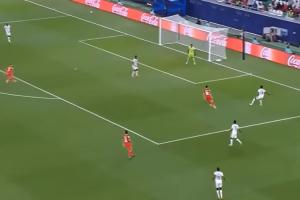 蘇丹中場(chǎng)阿馬爾·泰弗在己方底線附近過(guò)人,隨后詭異地“吊射”自家大門,門將勉強(qiáng)將球一撲,球落到對(duì)手腳下,然而巴林前鋒阿里·馬丹面對(duì)半個(gè)空門卻將球打偏,婉拒大禮。