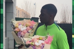 今天,法比奧特地找到訓(xùn)練基地負(fù)責(zé)洗衣的工作人員邵紅和陳玉敏,向兩位大姐獻(xiàn)花,感謝她們無(wú)微不至的照顧。??????