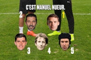 他以倒序列出切赫第5、范德薩第4、庫(kù)爾圖瓦第3、布馮第2,最終將諾伊爾評(píng)選為第1。