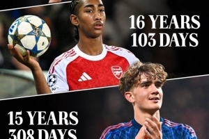 CBS指出,16歲薩爾蒙成為阿森納隊史歐冠出場最年輕后衛(wèi),也是第三位為英格蘭俱樂部在歐冠出場的U16球員,前兩位是威爾希爾、道曼,三人都效力于阿森納。