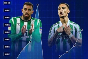貝蒂斯2019-20賽季一共花費(fèi)了1億歐元,而本賽季他們投入6200萬歐元,引進(jìn)了安東尼等球員,這是球隊(duì)自2019-20賽季之后的最高紀(jì)錄。