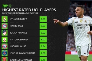 體育資訊12月11日訊 WhoScored統(tǒng)計(jì)了本賽季球員在歐冠比賽中的場(chǎng)均評(píng)分,并列出評(píng)分最高榜單,姆巴佩8.63分居首,凱恩8.03分次席。