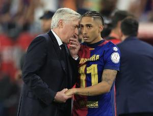 這位前鋒在此次國(guó)際比賽日期間備受關(guān)注,成為西甲聯(lián)賽唯一被征召的球員。巴薩甚至對(duì)其使用頻率表示擔(dān)憂(yōu),本賽季他已出戰(zhàn)總比賽時(shí)間的84%(270分鐘中登場(chǎng)229分鐘)。但拉菲尼亞正是這支新巴西隊(duì)的領(lǐng)袖之一,這位更衣室重量級(jí)人物在綠茵場(chǎng)上被視為無(wú)袖標(biāo)的隊(duì)長(zhǎng),安切洛蒂對(duì)其信任度甚至與維尼修斯等同級(jí)別核心持平。