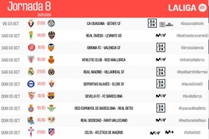 體育資訊9月9日訊 本周一,西甲聯(lián)賽官方公布了本賽季聯(lián)賽第8輪的賽程時(shí)間安排,比賽從10月4日03:00(北京時(shí)間,以下都是)到10月6日03:00。