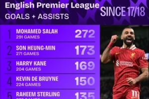 體育資訊9月9日訊 2017年加盟利物浦以來,薩拉赫在進攻端展示出了極高的效率。根據(jù)Squawka的數(shù)據(jù)統(tǒng)計,埃及邊鋒共出戰(zhàn)291場英超比賽,直接參與272球,同期斷層領先。
