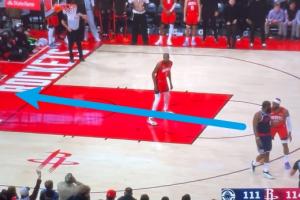 哈登指揮隊友去接球,小卡跑回來接,但是巴圖姆踩線失誤了!