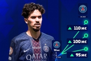 體育資訊12月12日訊 德國轉會市場預熱巴黎中場維蒂尼亞的身價變化,他的最新身價最高可能達到1.1億歐元。