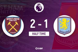 半場(chǎng)-西漢姆聯(lián)暫2-1維拉 馬特烏斯29秒閃擊破門 馬夫羅帕諾斯烏龍