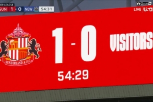 可以看到在桑德蘭1-0領(lǐng)先紐卡的比分牌上,既沒有后者的隊名也沒有隊徽,僅僅以客隊來標(biāo)注。