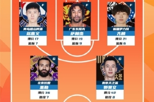 2025-2026賽季CBA聯(lián)賽常規(guī)賽第1輪結(jié)束較量,來自青島國信海天籃球俱樂部的趙嘉義,廣東宏遠籃球俱樂部的薩林杰,新疆廣匯籃球俱樂部的齊麟,北京控股籃球俱樂部的里勒和南京同曦籃球俱樂部的郭昊文入選CBA聯(lián)賽常規(guī)賽第1輪最佳陣容!