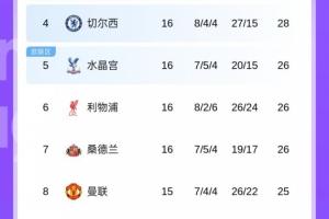 英超15輪過后,曼聯(lián)7勝4平4負(fù)積25分排在第8位。本場(chǎng)如果能贏球,曼聯(lián)將升至英超第5。