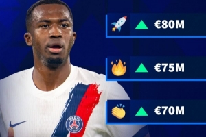 帕喬目前的身價為6500萬歐元,德轉給出的幾個數字分別8000萬歐元、7500萬歐元、7000萬歐元和6000萬歐元(下降)。