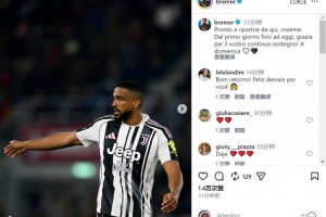 布雷默社媒曬出比賽照片,慶祝復(fù)出,他寫道:“準(zhǔn)備好從這里與大家一起重新出發(fā)?!?/p>