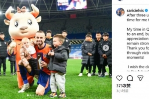 我在青島海牛的旅程已畫上句號,但我對球迷們的敬意與感激將永遠熾熱 ????????感謝你們在勝利時刻與艱難歲月里給予的鼎力支持!