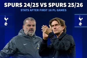 體育資訊12月16日訊 熱刺在本賽季英超表現(xiàn)低迷,新帥弗蘭克執(zhí)教未能達到預期,《轉(zhuǎn)會市場》統(tǒng)計顯示熱刺的表現(xiàn)還不及上賽季同期。