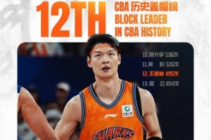 比賽進行到第二節(jié),王哲林送出個人本場第2次蓋帽。至此,王哲林CBA生涯蓋帽總數上升至495次,超越易立的494次,升至CBA歷史蓋帽榜第12位!