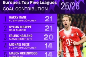 2025-26賽季五大聯(lián)賽參與進(jìn)球(進(jìn)球+助攻)數(shù)據(jù):