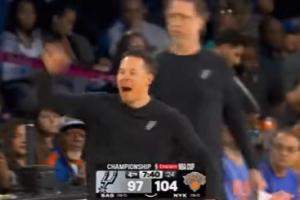 GIF-尚帕尼三分命中,但裁判吹進攻犯規(guī)
