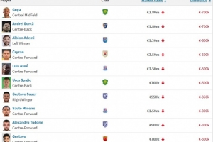 附中超身價(jià)下降榜: