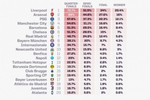 體育資訊9月10日訊 opta使用超級計(jì)算機(jī)預(yù)測本賽季歐冠奪冠概率,利物浦20.4%為奪冠最大熱門,阿森納16%次席,巴黎12.1%第三。