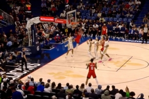 下一篇: 夸張彈速!卡斯?fàn)柗磽艚痈?怂箓髑?瞬間起飛單臂炸扣