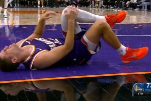 GIF-庫(kù)明加突破過(guò)程中 撞到了吉萊斯皮的膝蓋內(nèi)側(cè)!