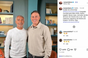 羅馬里奧在社媒寫道:“剛剛采訪了06年意大利隊世界杯冠軍成員、最佳球員、06年世界足球先生、前足壇最頂尖的后衛(wèi)法比奧·卡納瓦羅。深感榮幸?!?/p>
